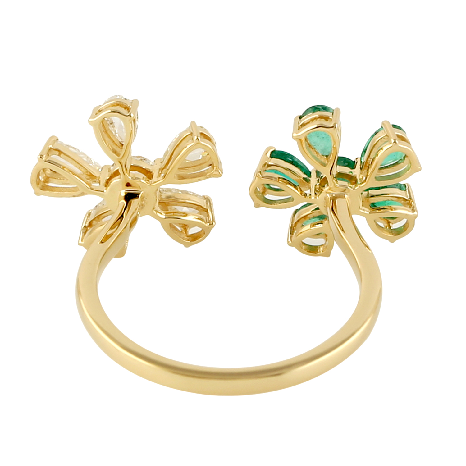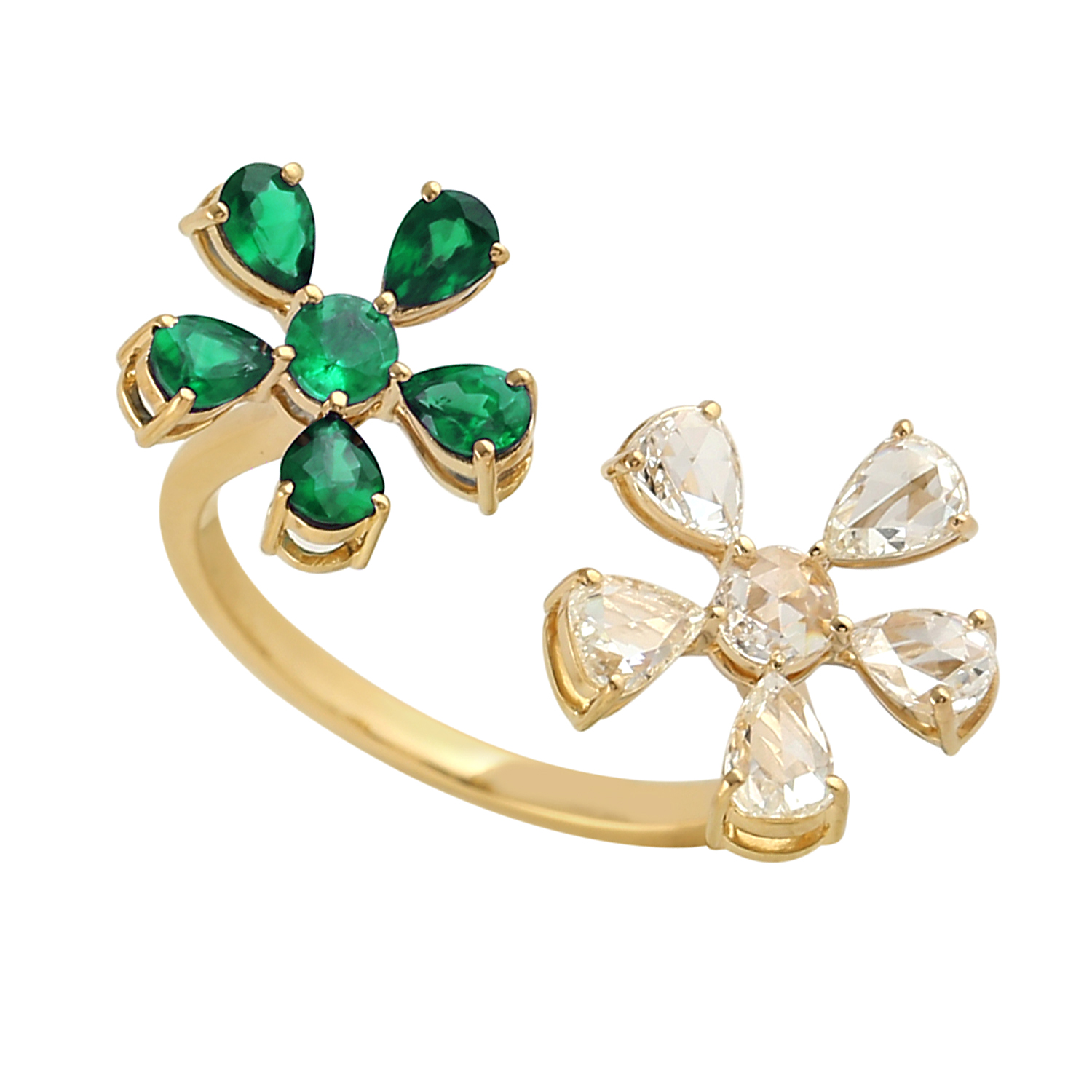 0.83ct Emerald Diamond Between The Finger Flower Prong Ring 18k Yellow Gold