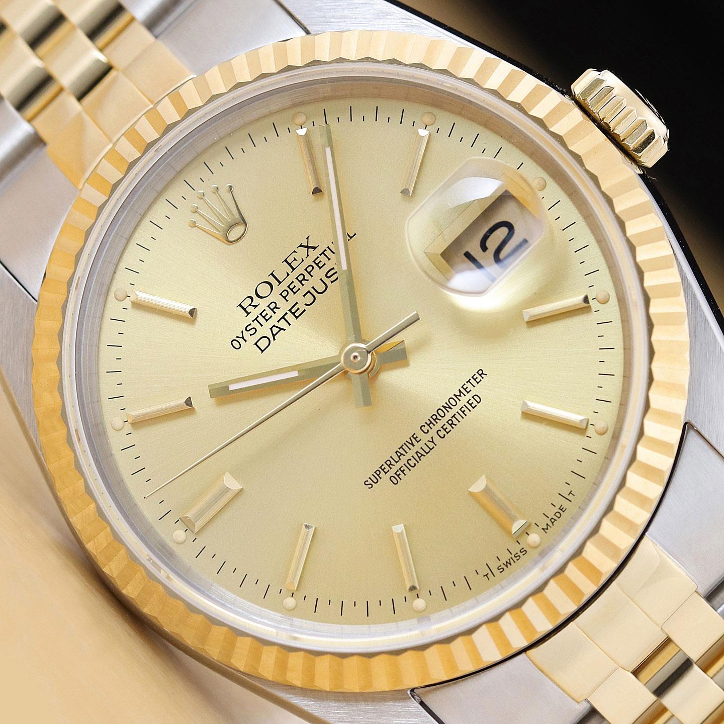 ROLEX MENS DATEJUST 16233 18K YELLOW GOLD STAINLESS STEEL 2-TONE CHAMPAGNE WATCH