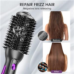- his hair dryer brush is the perfect combination of a blow dryer, hair comb, hair curler straightener, and massage comb. Oval designed 1000W blow dryer brush offers strong blowout and proper heat. Note: This hot air brush might not be recommended for short hair that does not reach the shoulders.