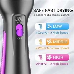 - 3 Heat/Speed modes for Styling Flexibility Suitable for different styling needs and all kinds of hair types. Low mode: High speed & cool air, Middle mode: Low speed & warm air, High mode: High speed & hot air. You can customize the dryer to your hair’s needs. Unlike normal blow dryer, this dryer brush can be placed closer to the scalp for better lifting.
