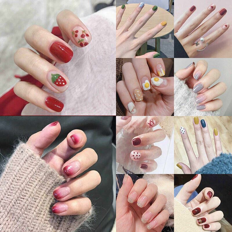 24 PCS Acrylic Full Cover Fake False Nails Women Short Round Press On With Glue