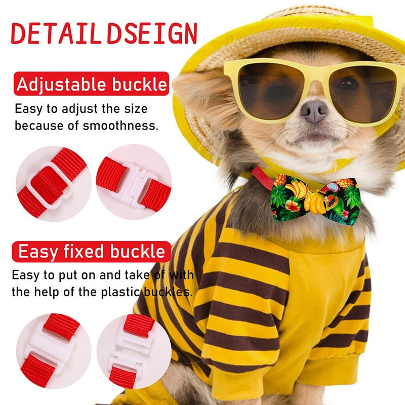 Fruit Patterns: these cute dog bowties are made with fruit styles and it's easy for dog, and cat to match different colors of clothes, and will never outdated, suitable for your pet in all seasons.