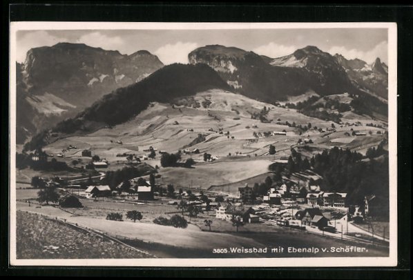 AK Weissbad, Talpanorama mit Ebenalp v. Schäfler