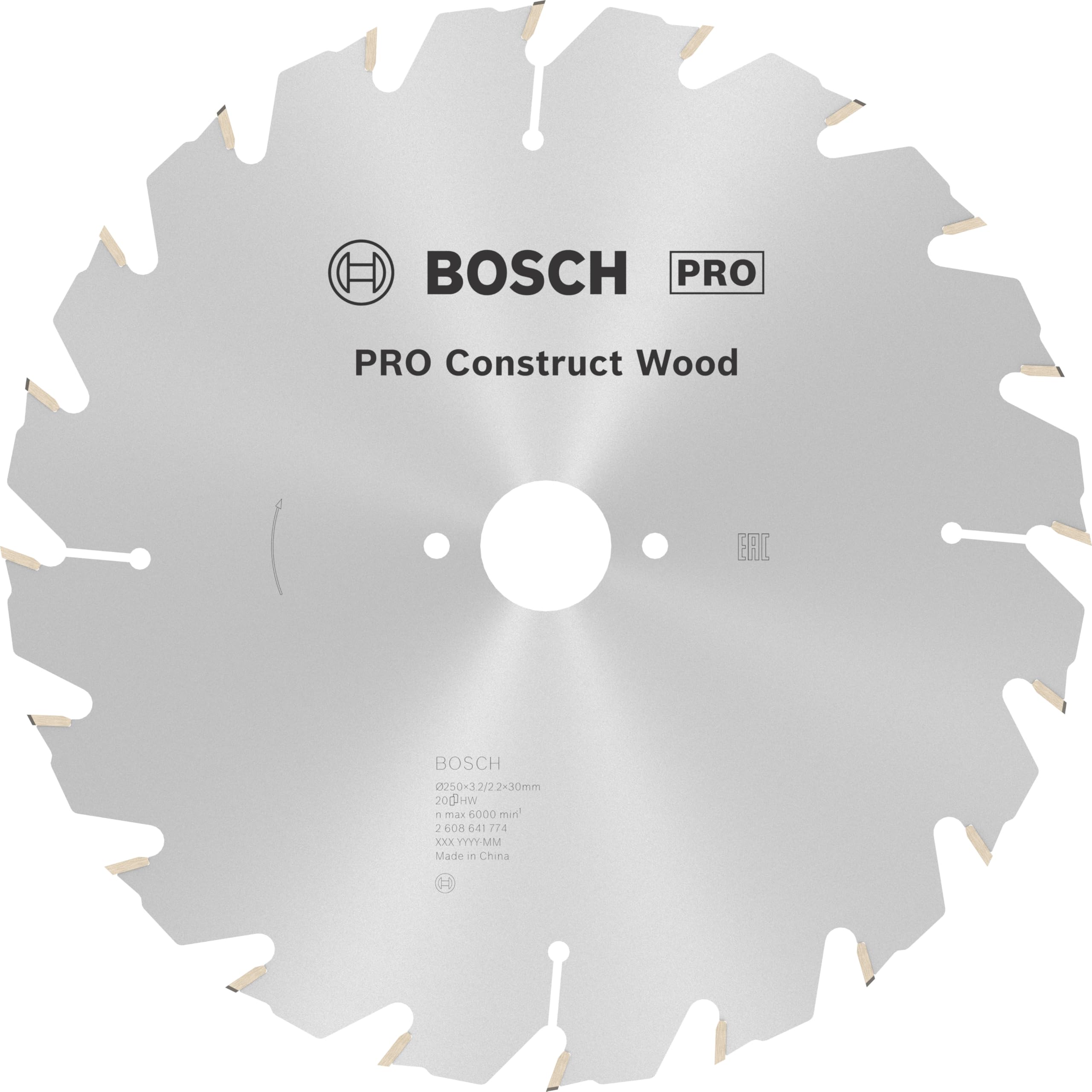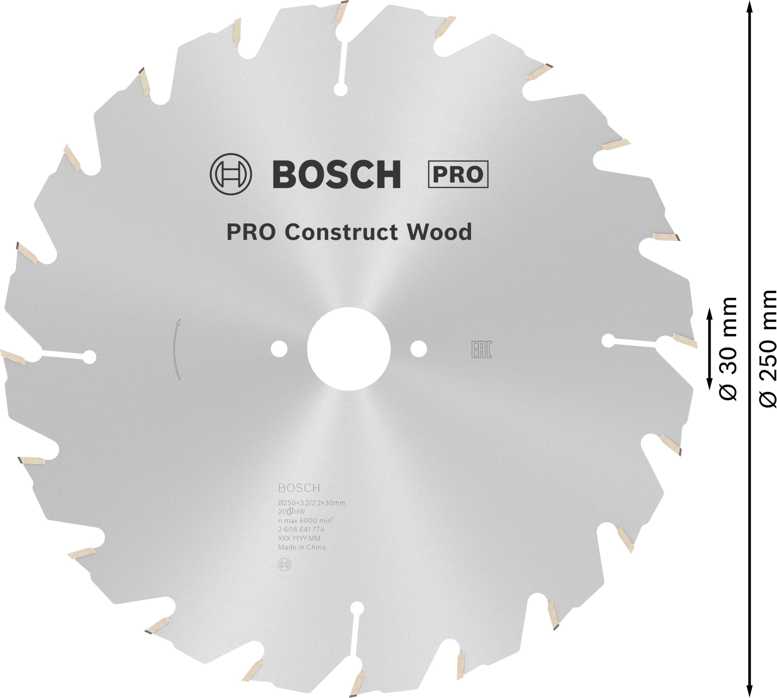 Bosch 1x Lama per sega circolare PRO Construct Wood per seghe da banco (per Legno da costruzione con malta e chiodi, Legno con chiodi, Ø mm, Professional Accessorio Sega circolare da banco)