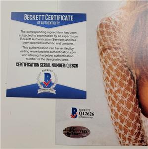 This signed photo is authenticated by Beckett Authentication and includes their tamper-proof serial-numbered hologram with a QR code that verifies authenticity in the online database.