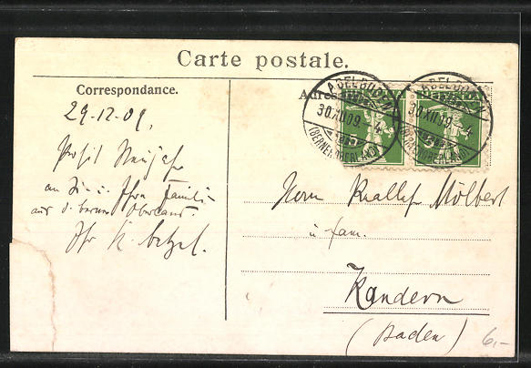 gelaufen 1909, Eckknick li. oben und re. unten, Einriss re. unten, Stempelspur, sonst guter Zustand