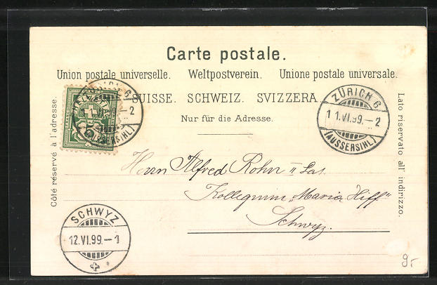 gelaufen 1899, Eckknick unten re., rückseitig Oberflächenschaden, guter Zustand