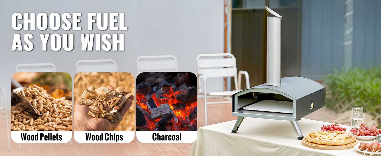 - Fuel Your Culinary Adventures: Our portable pizza oven offers a range of fuel options to suit your preferences. Whether you prefer the authentic flavor of wood-fired cooking or the slower burn of charcoal, this oven has got you covered. With its generous 480 g fuel tray, you'll spend less time refueling and more time enjoying your culinary creations.