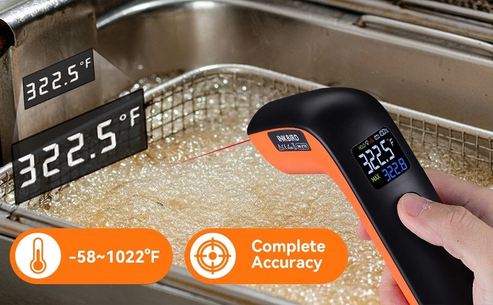 Inkbird infrared cooking thermometer gun measures range from -58℉ to 1022℉(-50℃ to 550℃), Response time