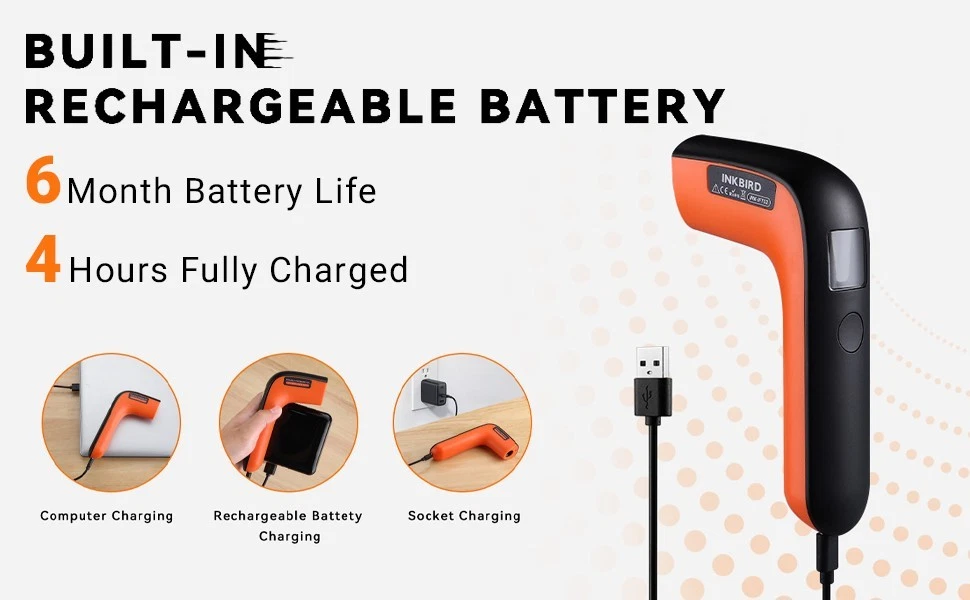 The rechargeable lithium battery is built into this upgraded temperature gun,could last 12 hours with backlight