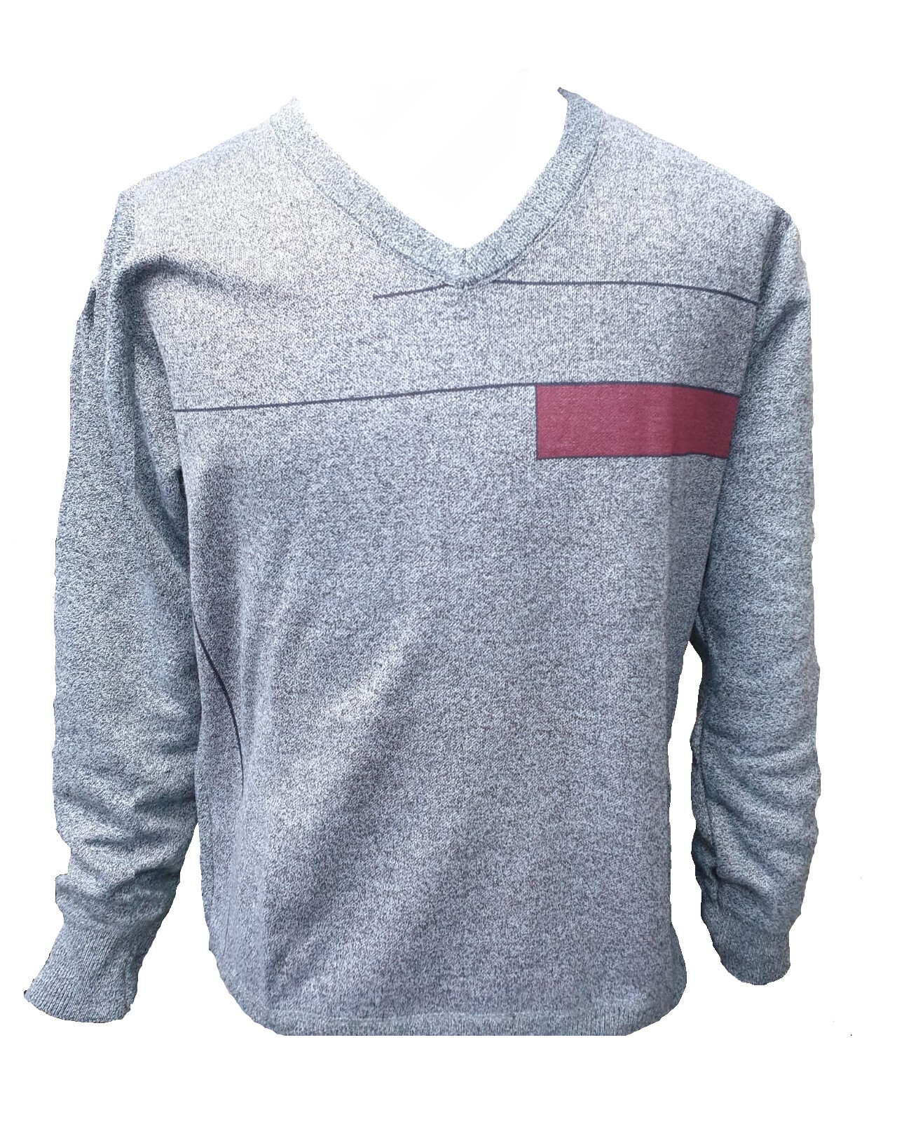 - The jumper features a long sleeve, V-Neck, colour block, ribbed neckline, and sleeve cuffs & hemline