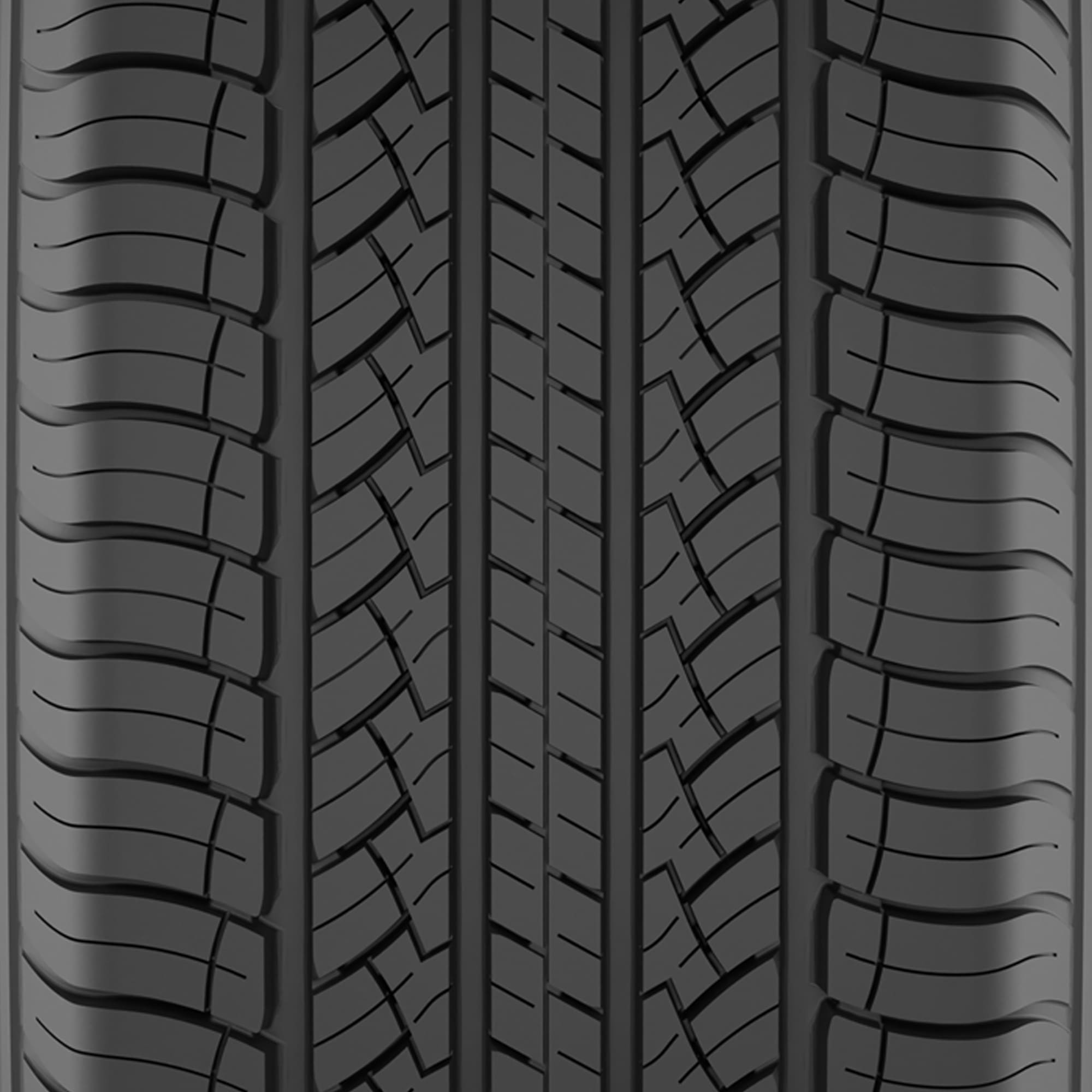 • Circumferential and angled grooves help resist hydroplaning by forcing water out of the tread