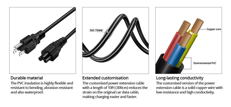 · 【Product specifications】Power cord length 3M (10FT), 250V/10A ,3x0.75MM², faster and more stable charging speed.