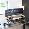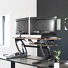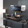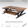 Improve your work experience with the extra-wide Vintage Brown / Black Desk Riser (DESK-V000VLN) from VIVO! The dual-tiered platform sits on top of your current desk and gives you the benefit of standing or sitting throughout the long workday. This provides numerous benefits for the body such as increased blood flow and reduced aches and pains. Standing throughout the day also helps the mind stay alert and productive. Counterbalance pneumatic springs adjust to the weight of your desk and everything on it for easy upwards movement. Find your perfect height level with unlimited adjustable points between 6 and 17 inches from the desk surface. All hardware and instructions are provided to get your new desk converter assembled for increased work comfort in no time!