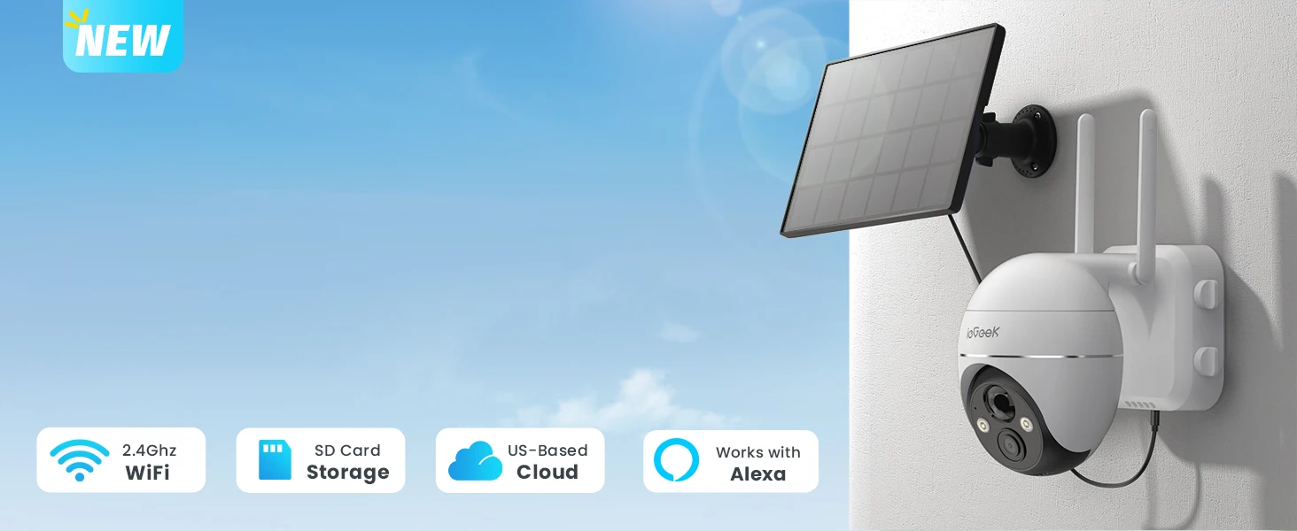 Support AI Smart Recognition; Support Working with Alexa; Support Full Color Night Vision; Support Siren & Light Alarm; Support both ieGeek Cam APP & Cloudedge APP.