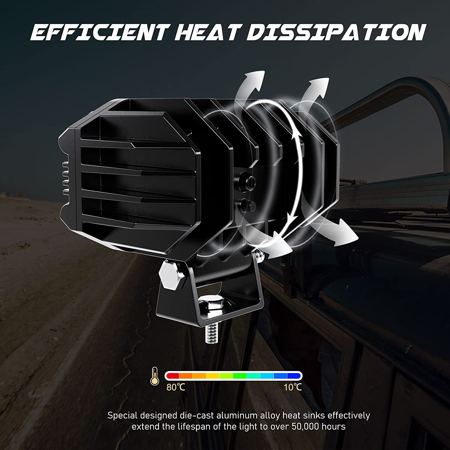 Special updated LED chips design provides longer illumination range and better visibility, no dark spot, giving you great vision without harsh glares.