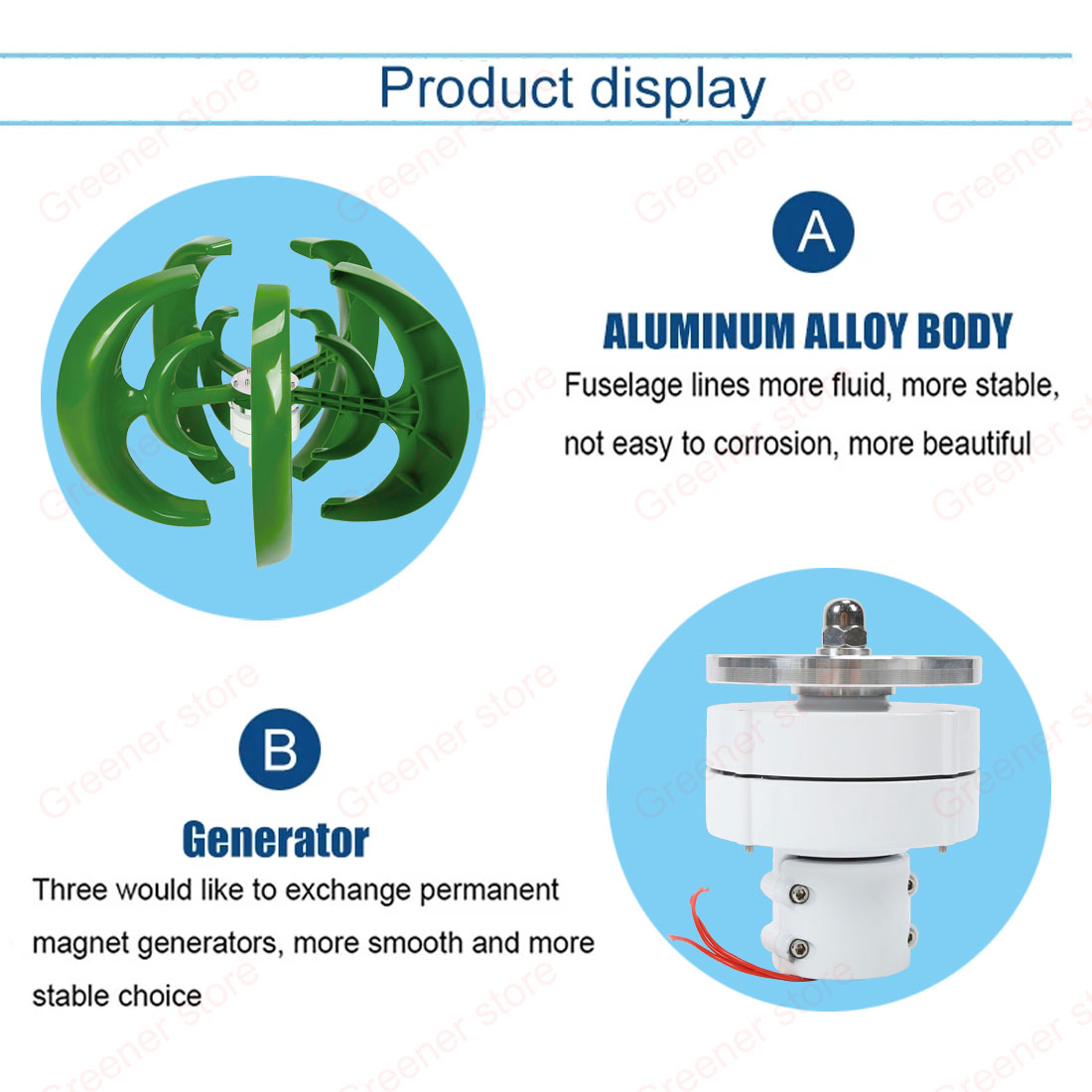 -Turbina eolica, bassa velocità di avvio del vento, alta efficienza, dimensioni ridotte, basse vibrazioni e basso rumore.
