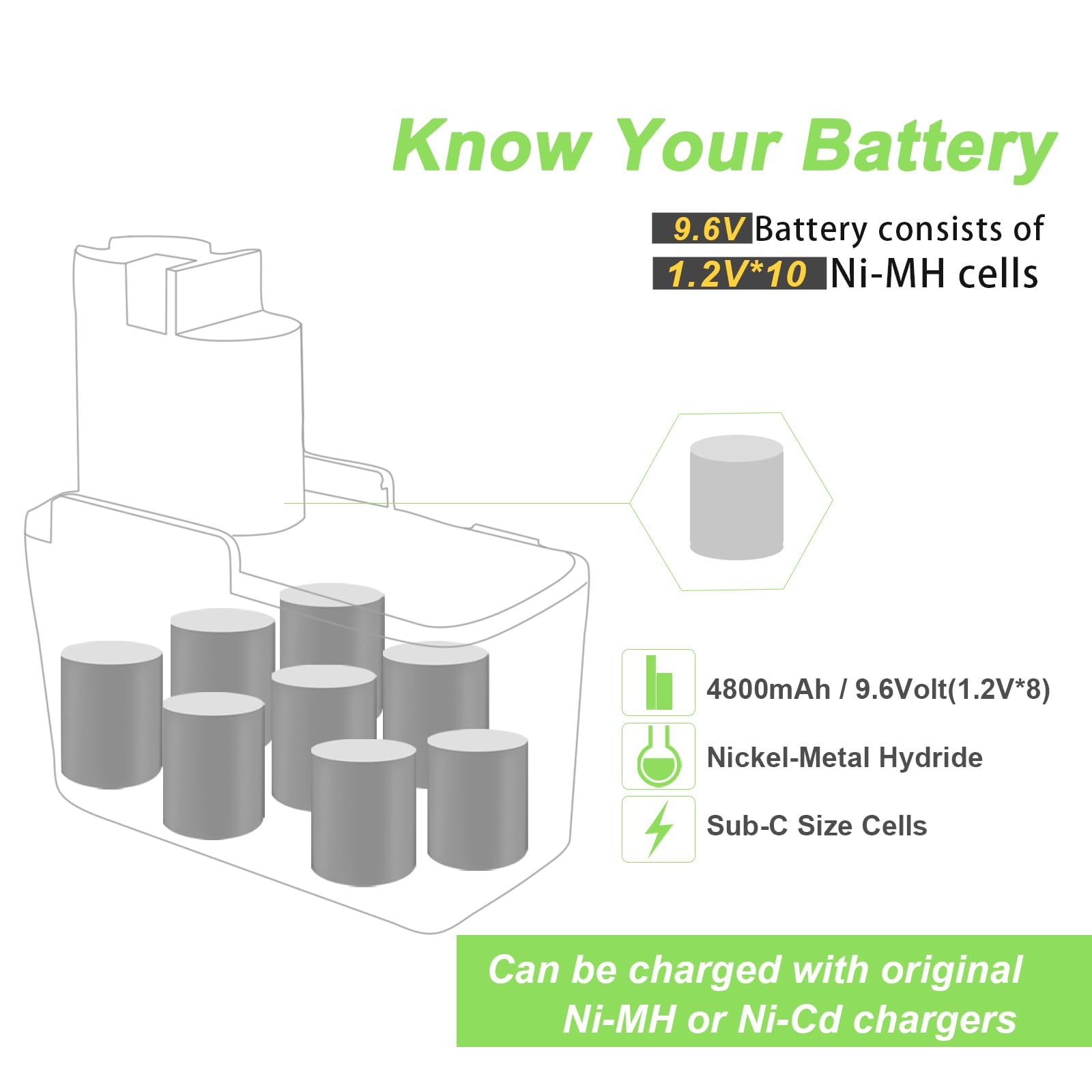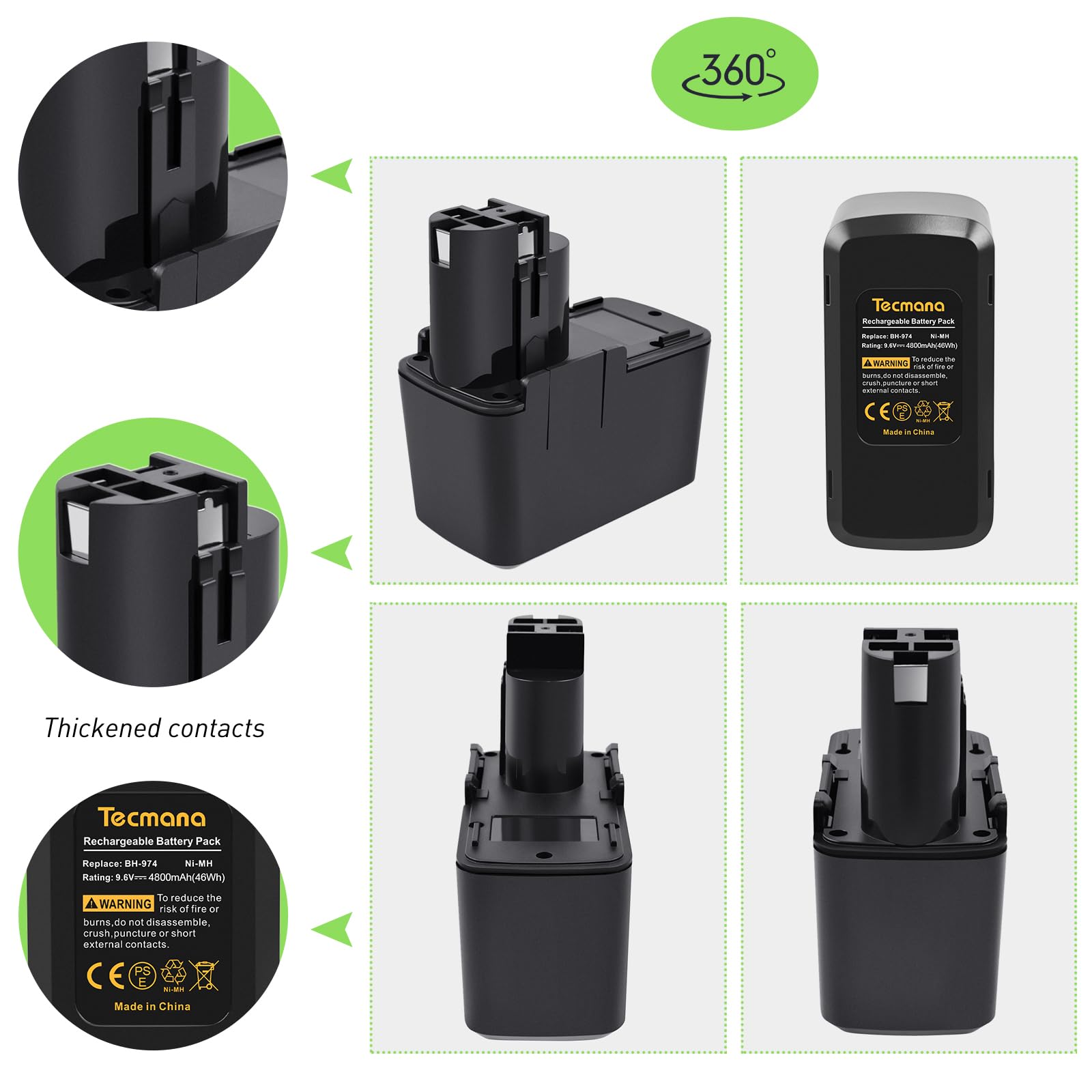 Tecmana 9.6V 4.0Ah Batteria per Bosch BAT001 2607335035 2607335037 2607335072 2607335230 2607335254 PSR PSB GSB GSR 9.6VES-2 9.6 VE-2
