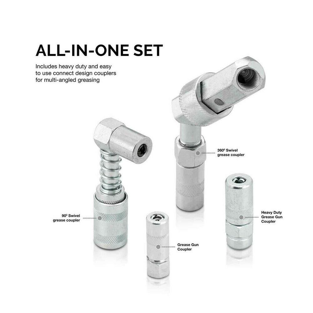 Accessory Type: Lube accessory kit, Compatible With: Grease lubrication applications, Swivel (degree): 360-degree coupler, 90-degree lube tool, and Slide-on 90-degree coupler.