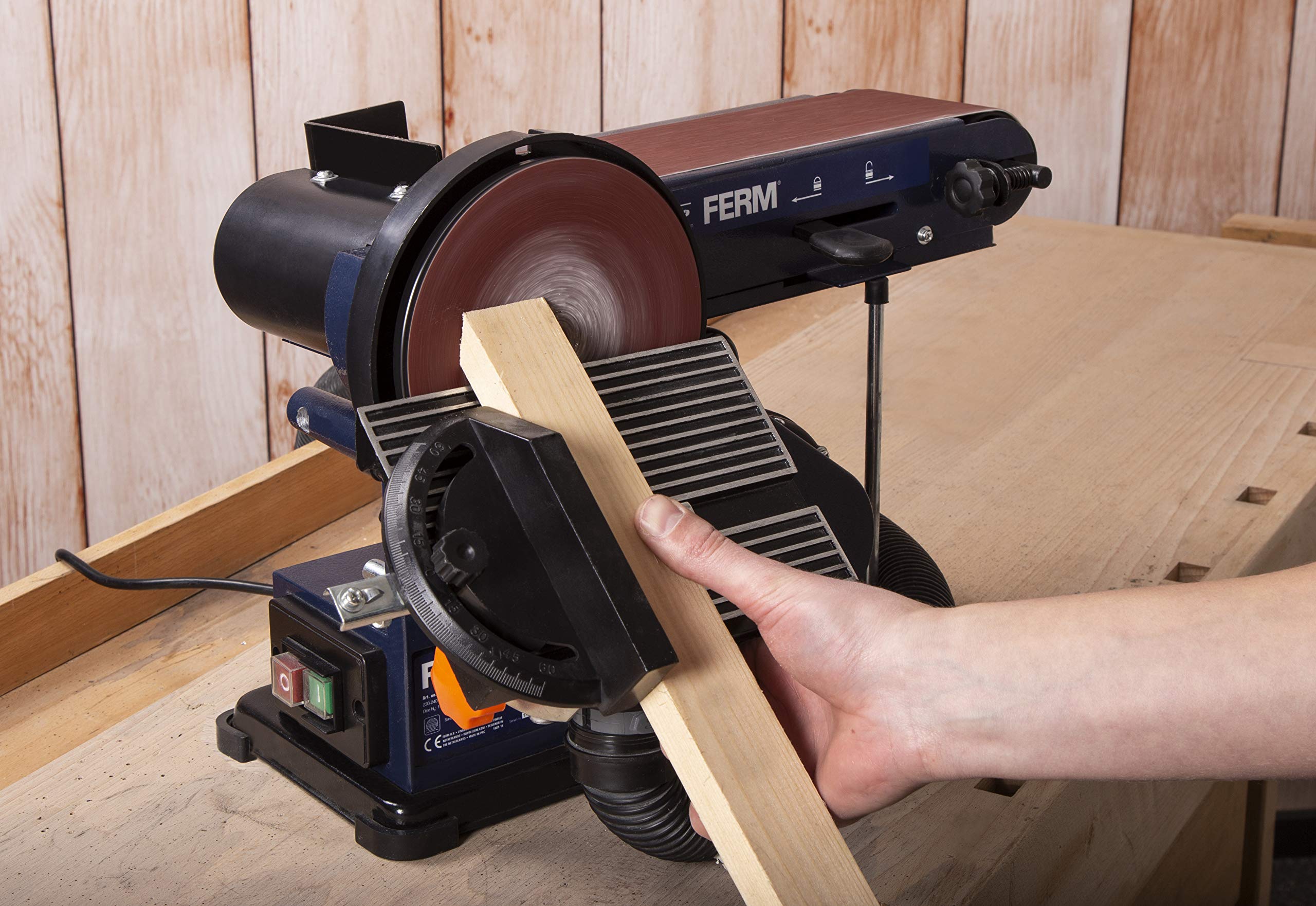 FERM Levigatrice da Banco Combinata 350W - 150mm. Include 2 Nastri Abrasivi (G80 e G120) e 2 Dischi Abrasivi (G80 e G120)
