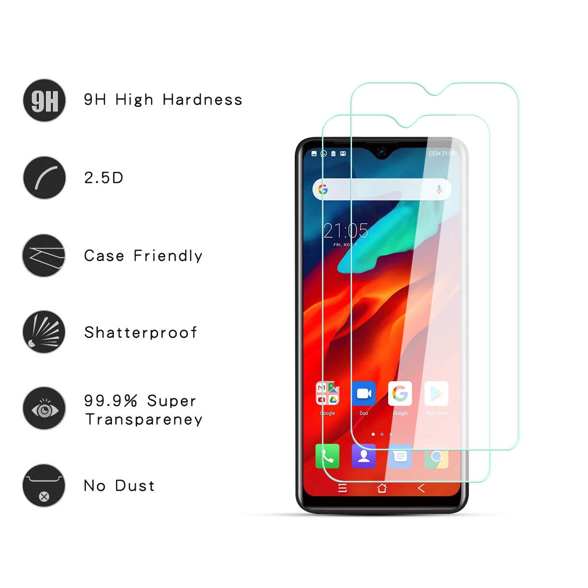 HJX Pellicola Protettiva in Vetro Temperato per Blackview A80 Pro [2 Pezzi], Durezza 9H, 2.5D Alta Definizione, Senza Bolle, Anti Graffio Screen Protector per Blackview A80 Pro