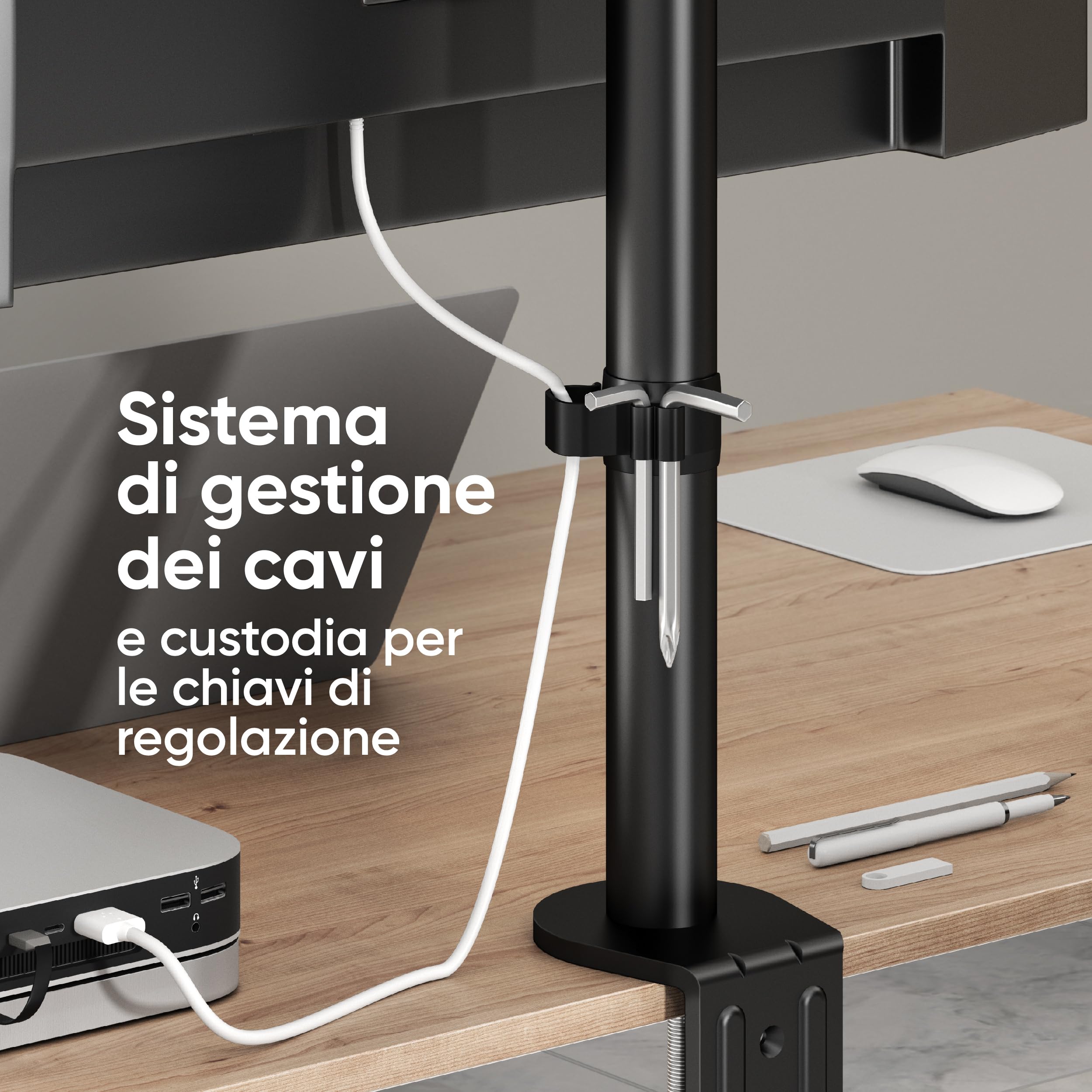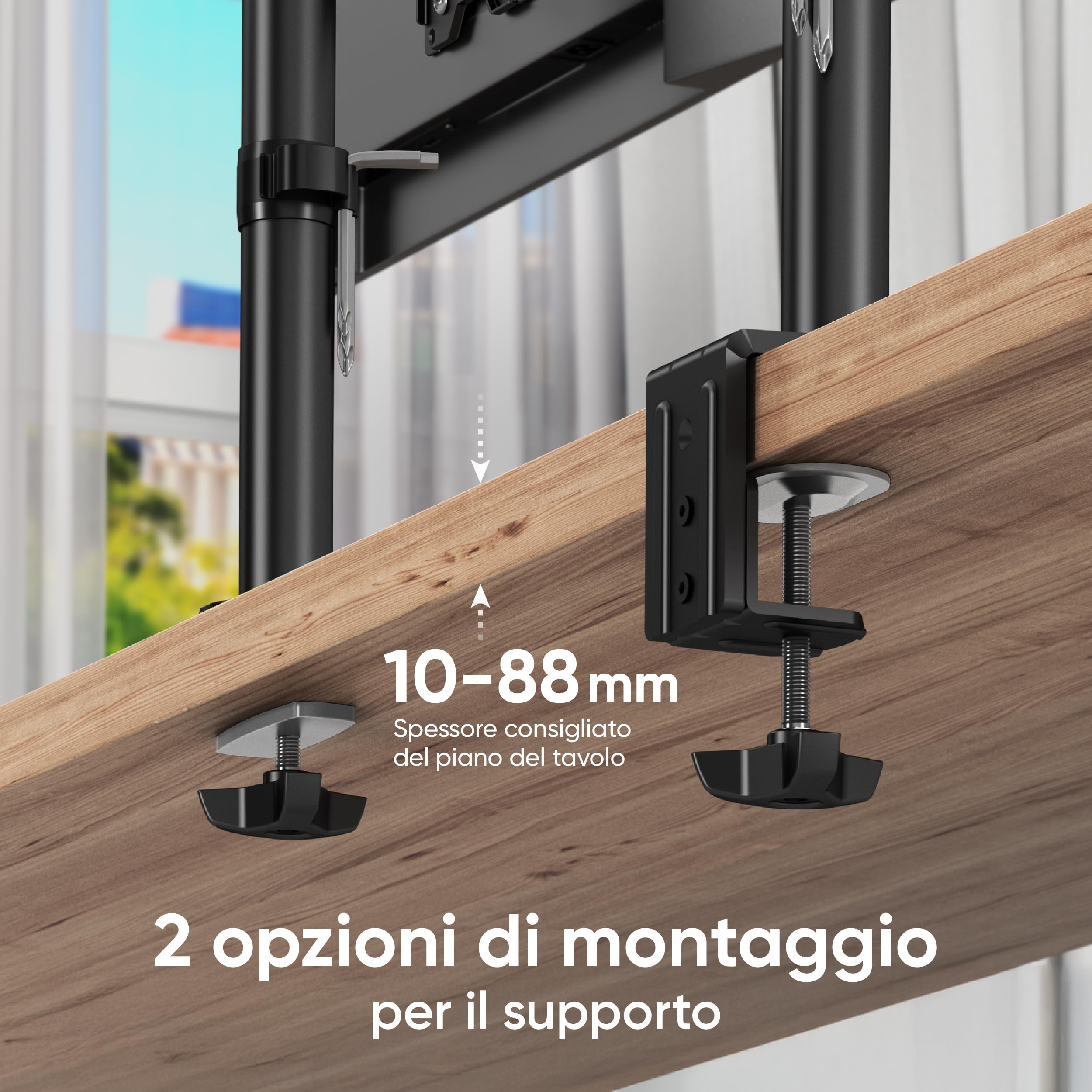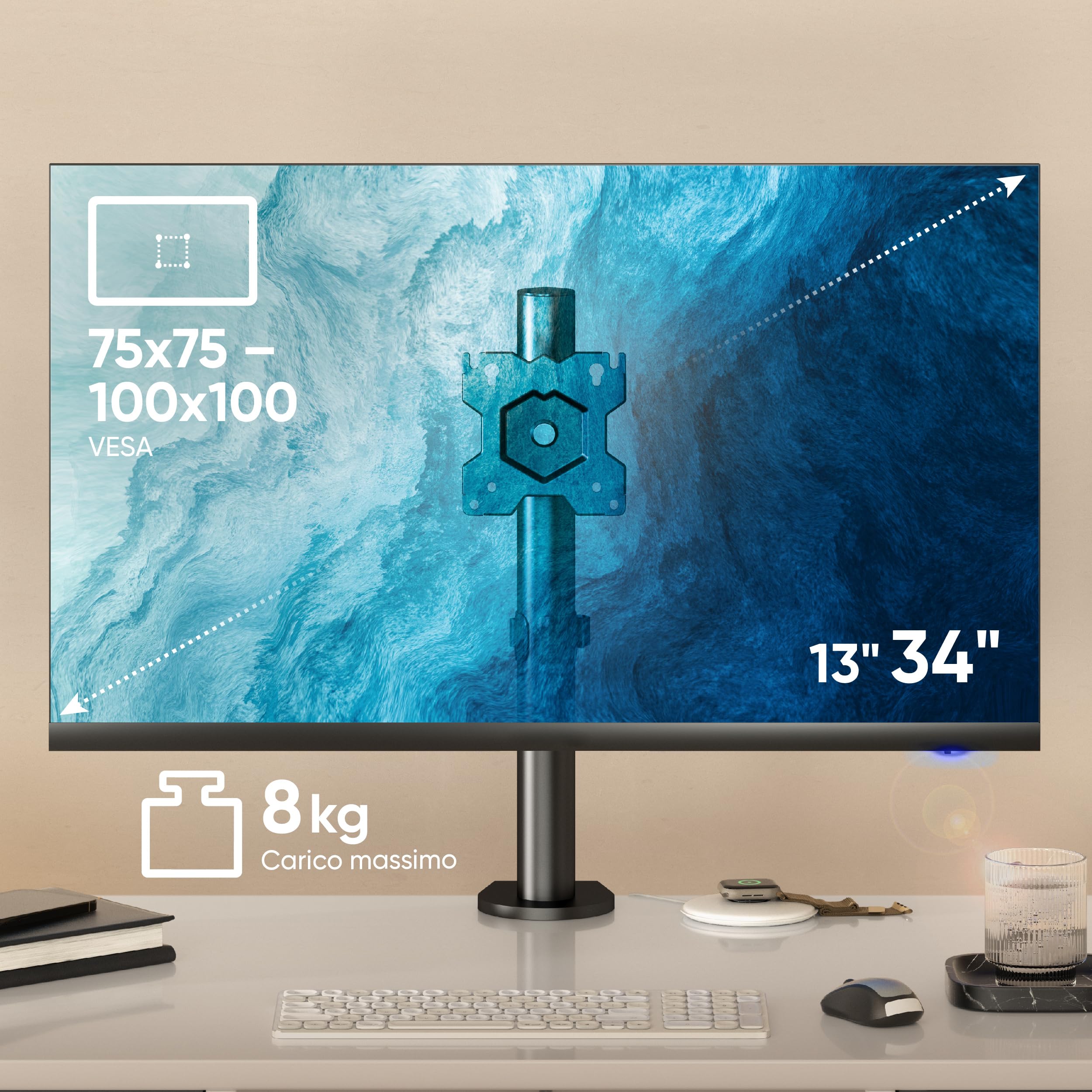 ONKRON Supporto monitor scrivania 13"-34", Braccio per schermo PC Carico 8 kg, Braccio monitor scrivania VESA 75x75-100x100 mm, Supporto schermo PC Regolabile, Inclinabile, Girevole, Nero D101E-B