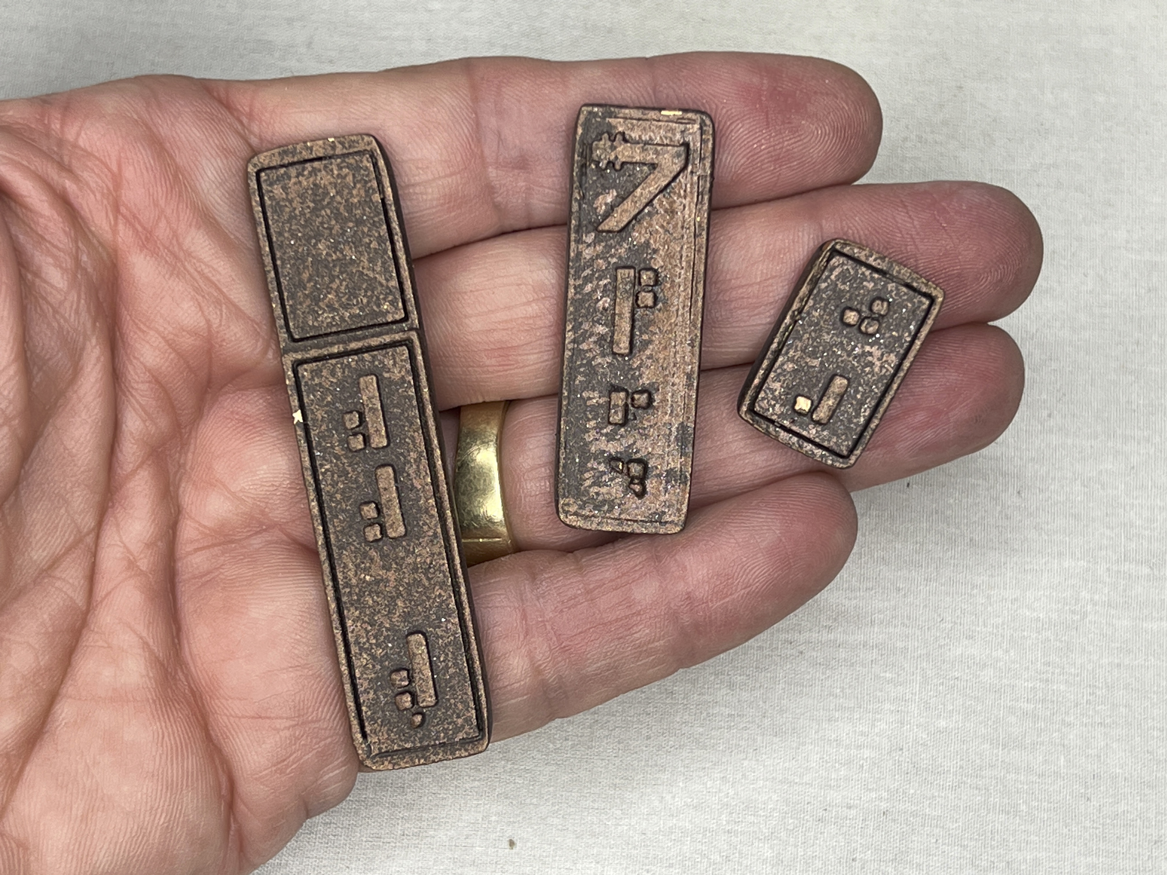 Each Star Wars Galactic Credit Ingot is Very Durable and made out of Solid Metal. This is a Nine Piece Set and it comes with Three Credit Ingots in Each Color. The Colors are Silver, Gold and Bronze. They are Artistically Aged and measure; Small .5 inch wide x 1 inch long x .13 inch thick, Medium .5 wide x 2 inch long x .13 inch thick, Large .5 inch wide x 2.75 long x .13 inch thick.