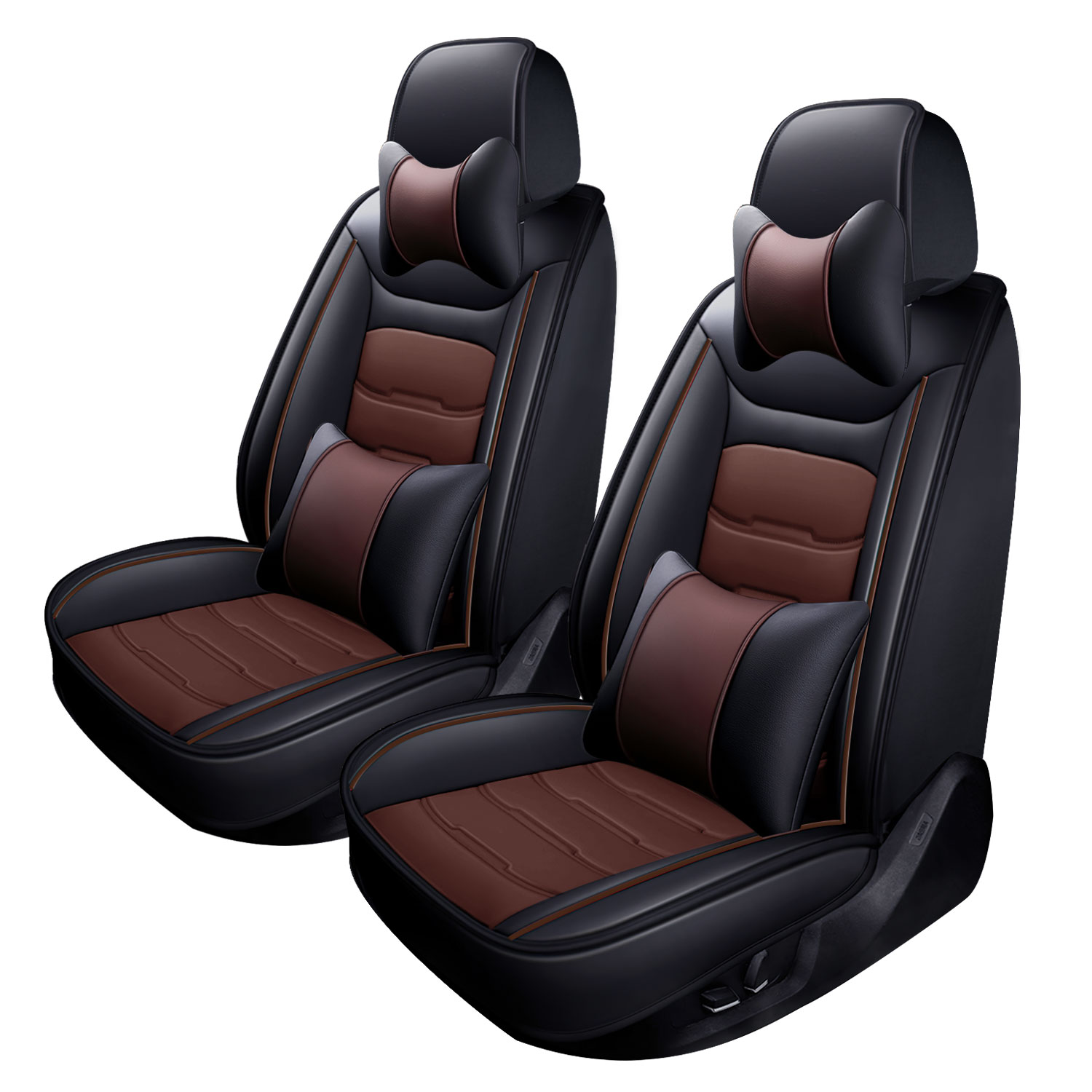 The seat covers are padded with PP cotton and sponge, thicker than most seat covers. this will make you feel more soft and comfortable. The faux leather feels like soft real leather, it does not make the car smell like toxic rubber or resin; It will make your original seats waterproof for spills, dirt and sweat.
