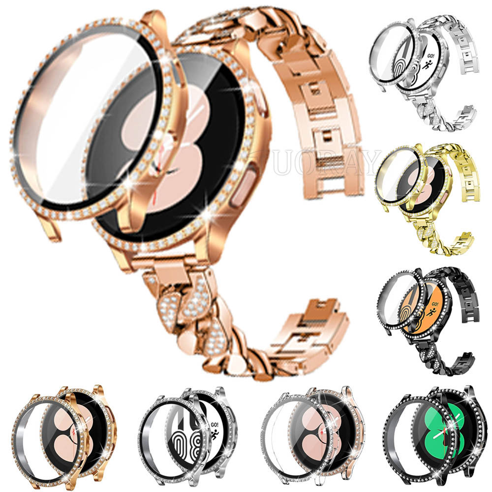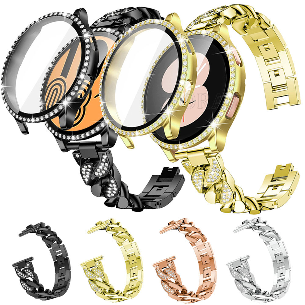 For Samsung Galaxy Watch 6 5 4 40 44mm Bling Diamond Metal Strap Band Case Cover