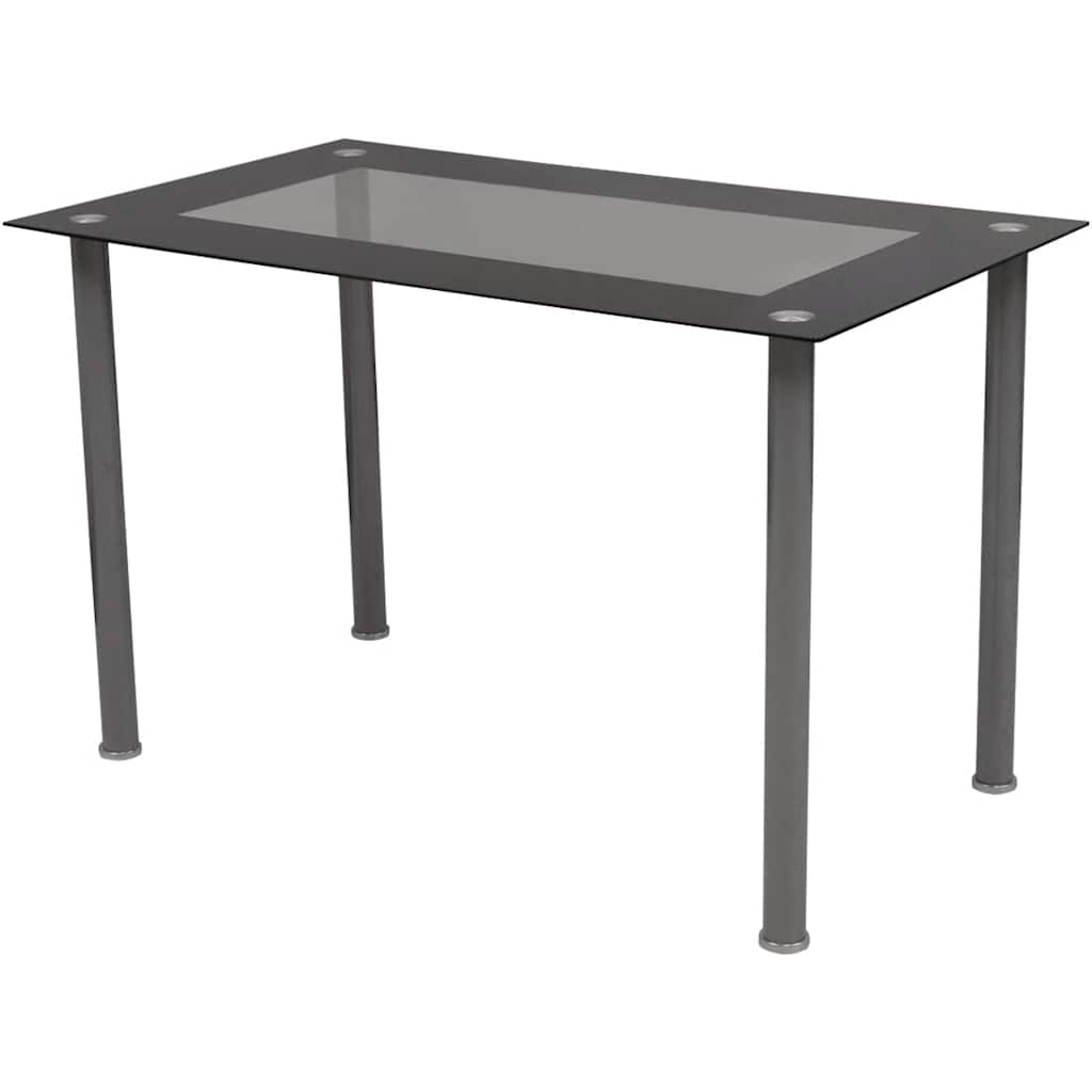 Il telaio in acciaio verniciato a polvere fornisce pieno supporto per il tavolo, mentre il piano in vetro, che ha un bordo nero, è in vetro temperato ad alta resistenza ed è facile da pulire. Le sedie mozzafiato sono contemporanee e senza tempo. Grazie al loro design ergonomico, sono altamente confortevoli ed i loro telai in acciaio solido le rendono molto stabili e durevoli. Il montaggio è molto semplice.