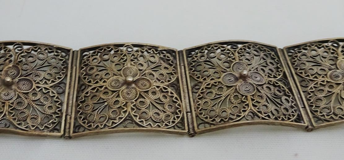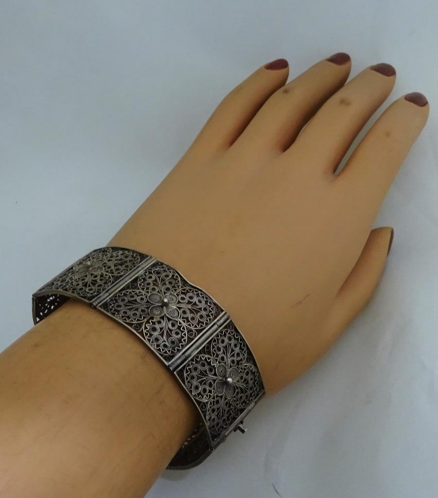 Wide Vintage / Antique 800 Silver Filigree Flower Design Panels BRACELETFor Your Consideration is a Bracelet I Purchased at a Central Ohio Estate Auction.I believe it to be circa 1930s or Earlier.Marked 800 and with what looks like an Italian Hallmark.It Measures Approximately 1" Wide x 7 1/8" Long (Wearable Length)~ See Images for Additional Details.