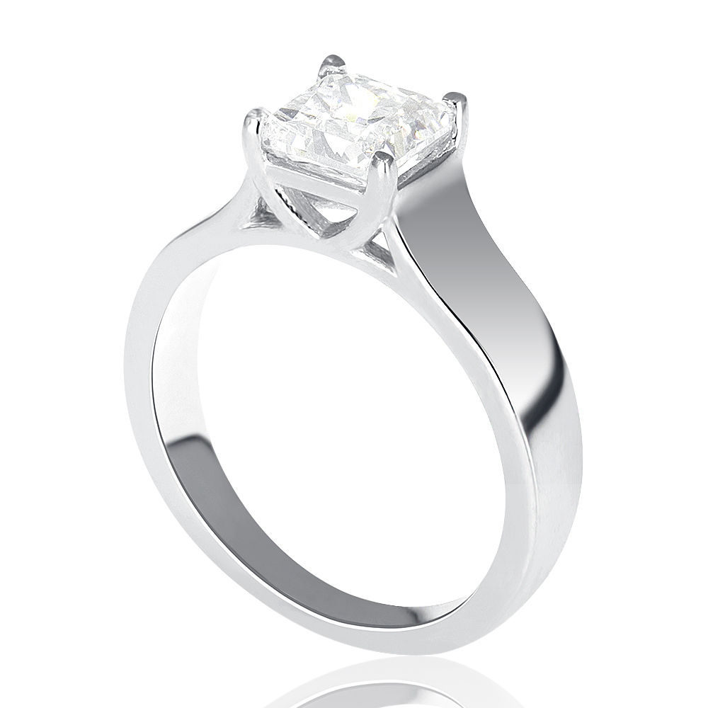 0.50 CT F/VS1 Classic Princess Cut Diamond Engagement Ring 14K White Gold