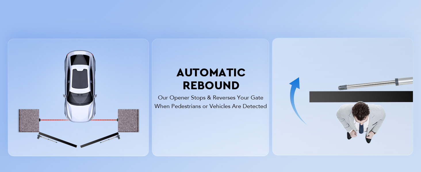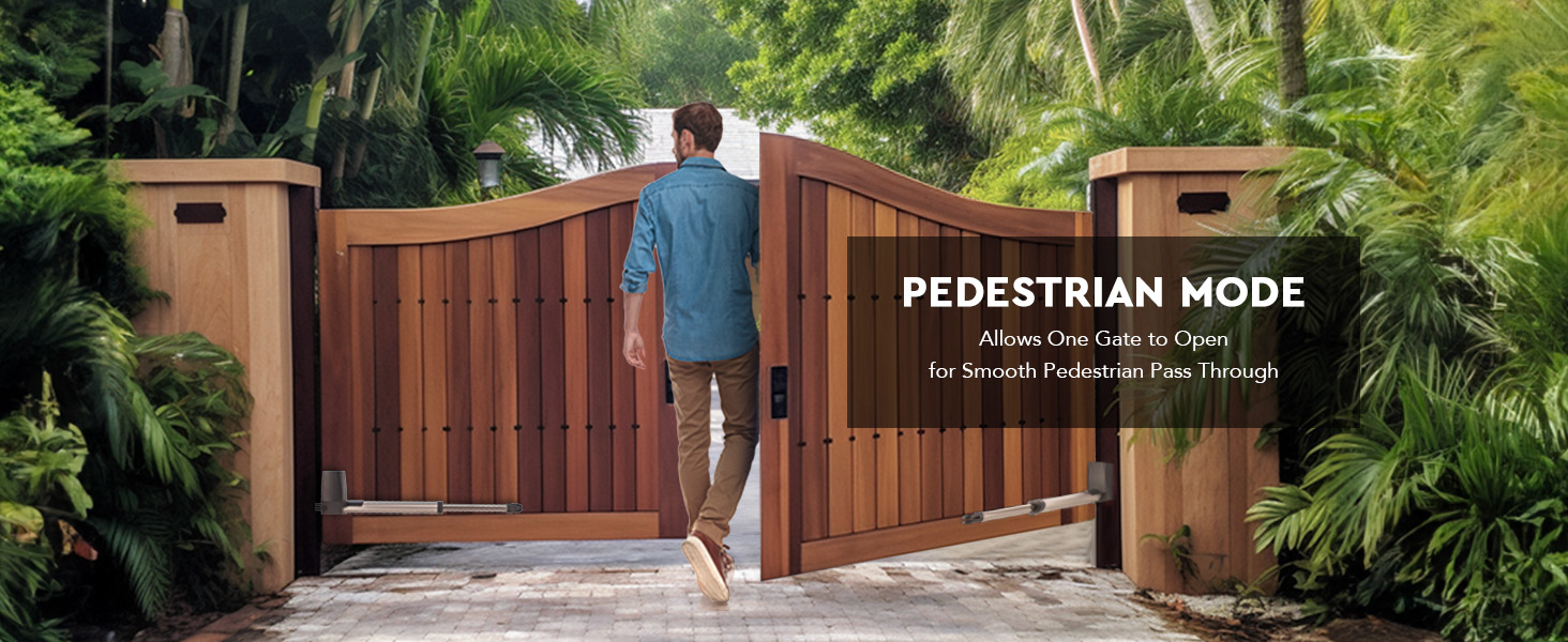 Infrared Sensors Equipped: This auto gate opener kit with remote responds by stopping and reversing gates if any obstacle is detected by its integrated infrared sensors. For added convenience, it features a pedestrian mode for efficient partial gate openings.