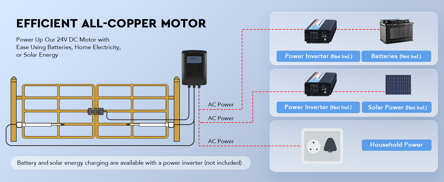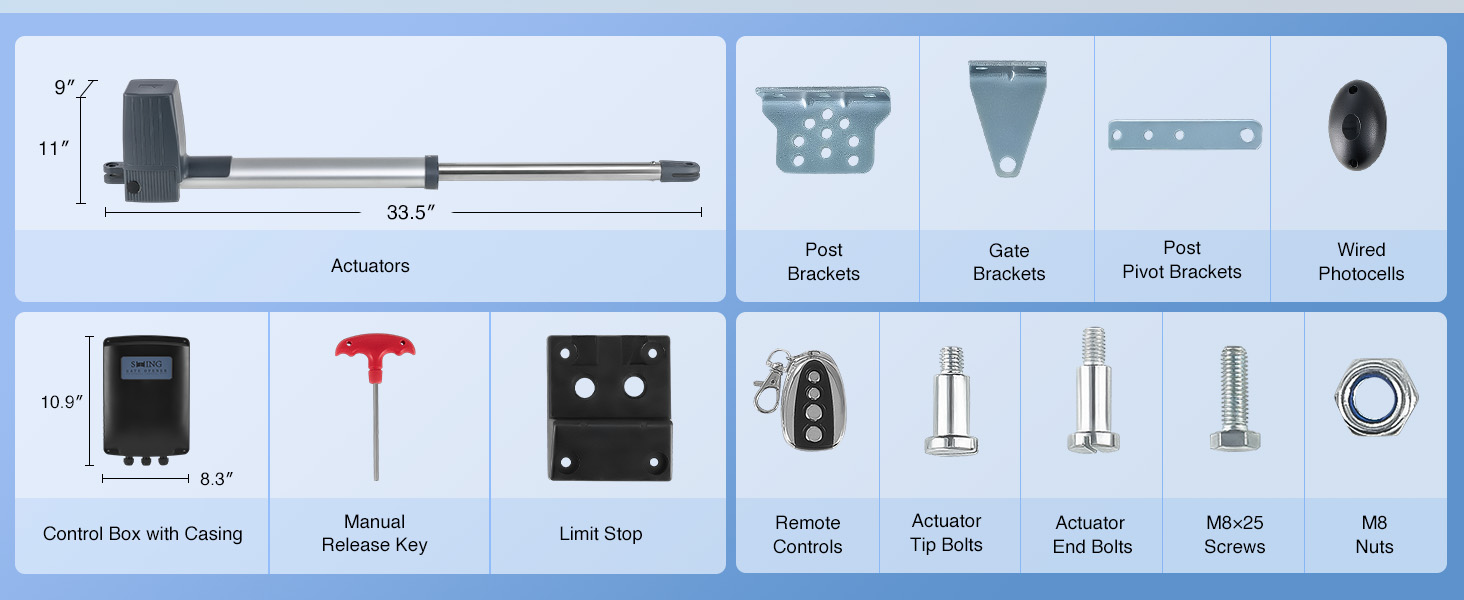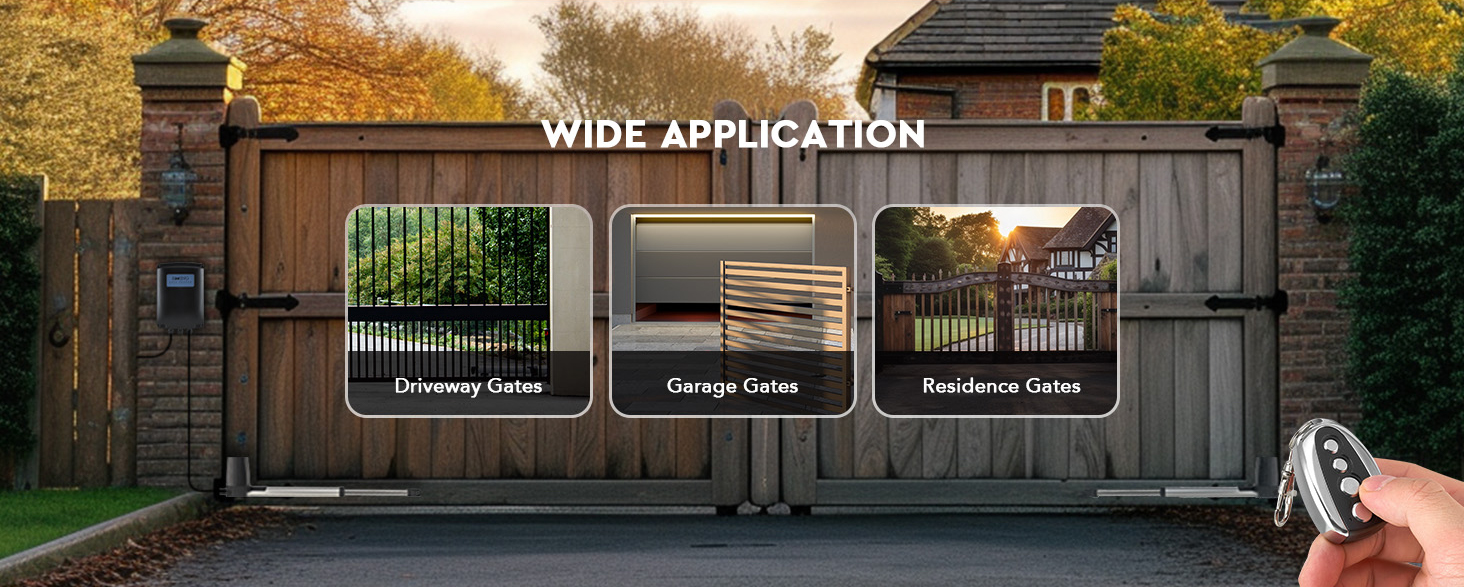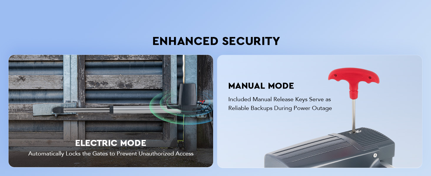 Dependable Safety: This electric gate openers with remote complete kit automatically locks your gates when they’re closed to prevent unauthorized access. The included manual release keys serve as a reliable backup in case of a power outage.