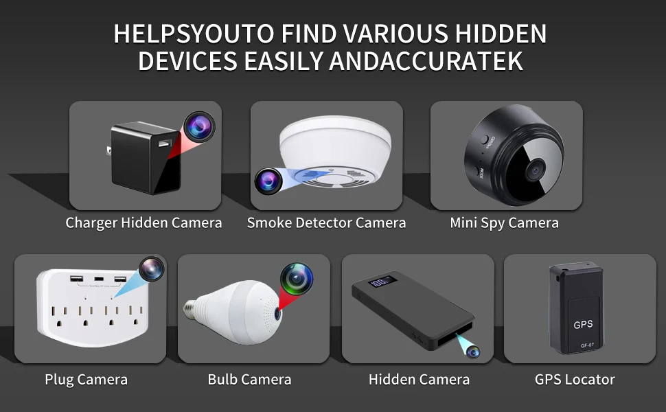 【Upgraded Ultra-sensitivity Chipset】 With R&D upgrades, new microprocessors are embedded, enabling camera detector working more intelligently and accurately, with strong anti-interference, ultra-far detecting range, comprehensive signal accumulation and algorithm, long-lasting battery life. With upgraded ultra-sensitive chips, this camera detector has 6 levels of sensitivity, which allow you to accurately find the signal source.