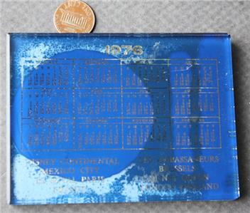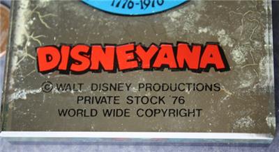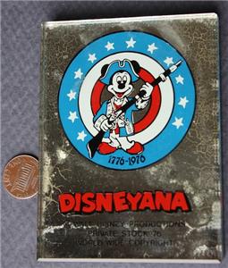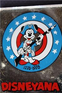 Check it out...Here's an original very uncommon style 3" wide by 4" tall by 1/2" thick colorful RWB & Metallic silver mirror finish glass paperweight from the 1976 National Bicentennial with an image of Mickey Mouse as a Patriot soldier on front & reading: "1776-1976-Disneyana Walt Disney Productions Private Stock 76 World Wide Copyright" trademark at bottom-Paperweight has a 1976 calendar with the names "Disney Continental Mexico City, Le Royal Paris France, Les Ambassadeurs Brussells, Disney Odeon London England" which are all hotels (I assume hotels run / operated by Disney) on back- Mirror is in great condition with no chips or cracks but does have some silvering and clouding of inset in the glass, so it's not mint, but it's still a great example of an uncommon dated Disney Bicentennial display item! This is an ORIGINAL item, NOT A REPRODUCTION item! Postage information is listed at the bottom-$ 5.95 postage is required.