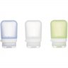 The Humangear GoToob+ 3-Pack is the original patented soft silicone travel bottle. The base design is contoured for stand-up filling and has a wide opening for easy filling and cleaning. The LoopLock securely locks so there's no leaks or messes and can be used to hang from a hook or clip to a bag with a carabiner (not included). The textured area on the collar can be used for labeling.