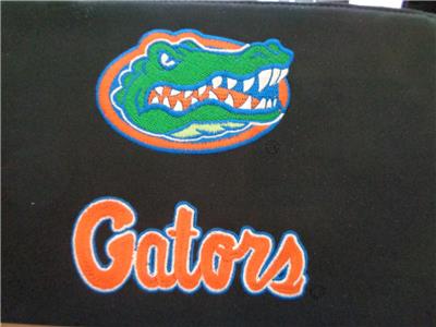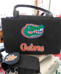 Univ. of FL Gators. Woman's black cloth purse with embroidered logo on both sides. Magnetic closure, one small zippered compartment inside. I'm also including the little UF case. Purse is 9 1/2" long, 6 1/2" tall (not counting straps) and 4" wide. No damage, but it is pre-owned. Questions? Please ask...