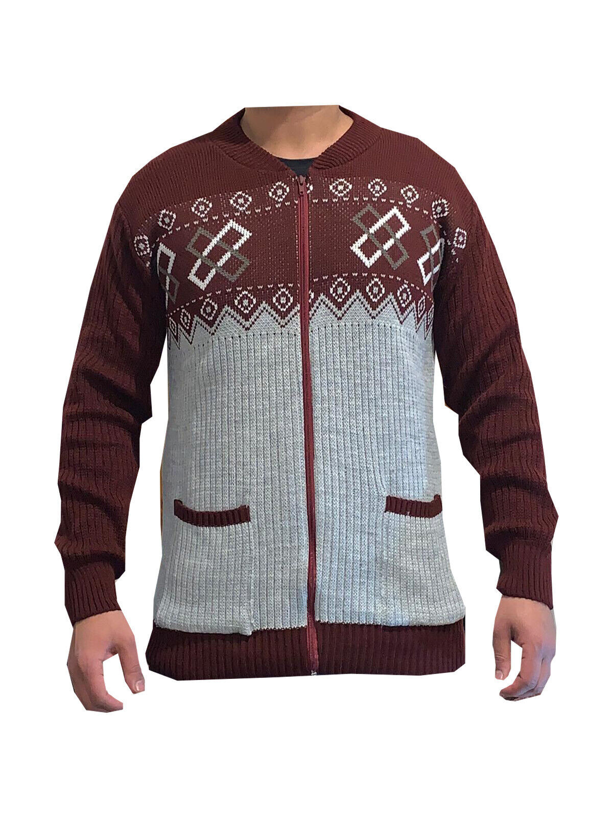 Mens Classic Knitted Full Zip Neck Knitwear Warm Sweater Top Jumper Cardigan