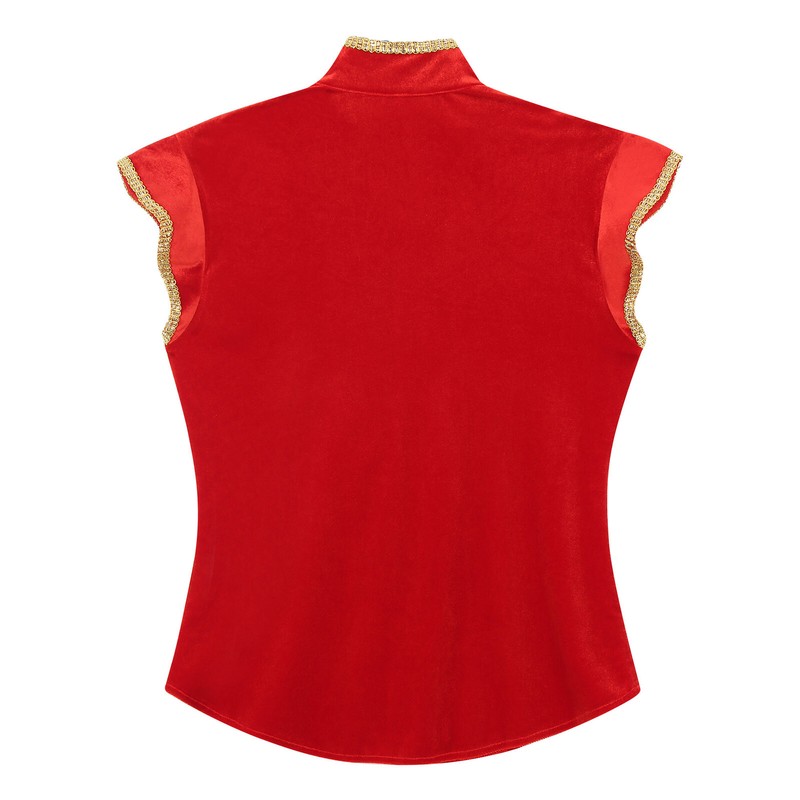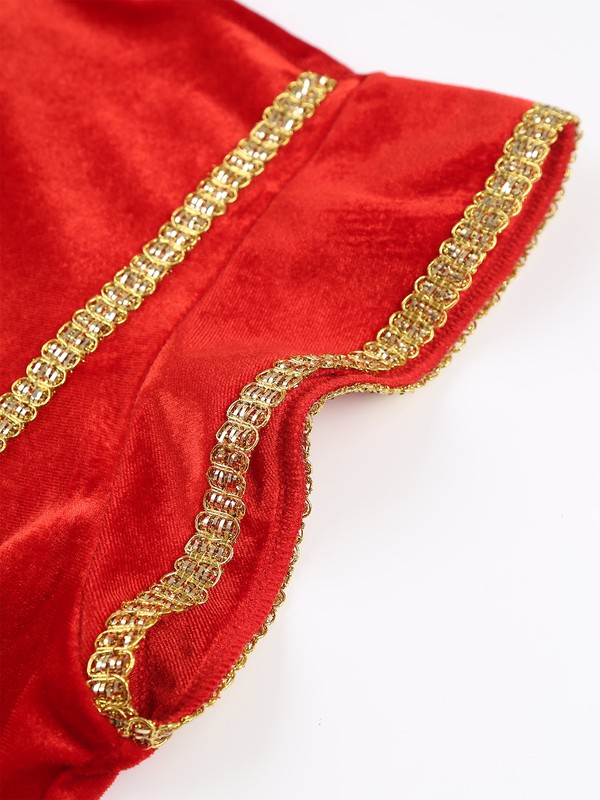 Gold trims on neckline, cuffs and front, pairing with velvet fabric, bring a sense of luxury and noble, perfect for party.