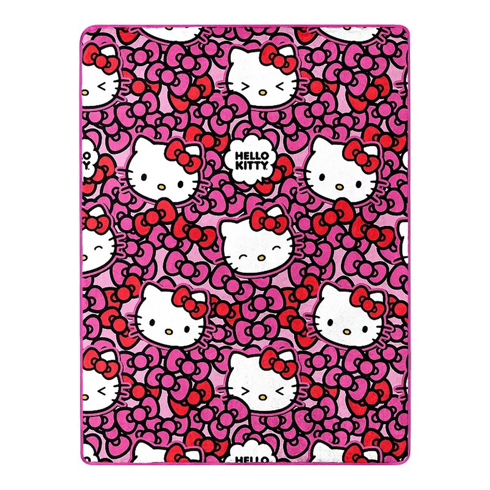 Crafted of a super soft minky fleece with a fun Hello Kitty and bow print.Of a plush, lightweight polyester.Measures a generous 46" X 60"Sanrio Hello Kitty TM