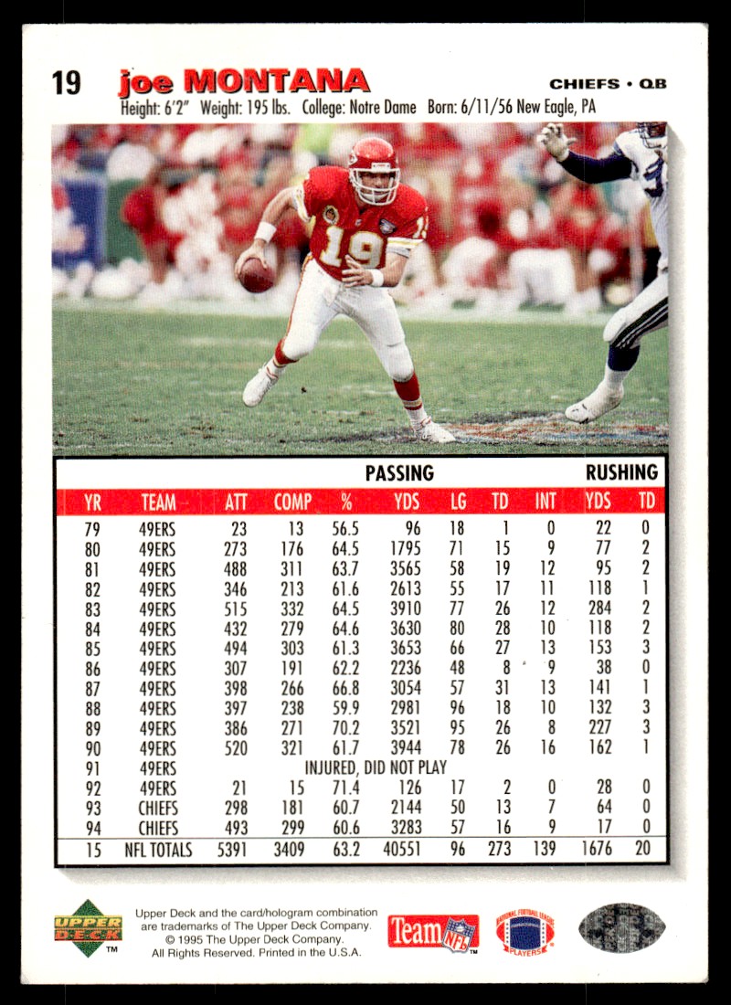 | 1995 Upper Deck Joe Montana Box Set 19 Joe Montana | ||||||||||||||||