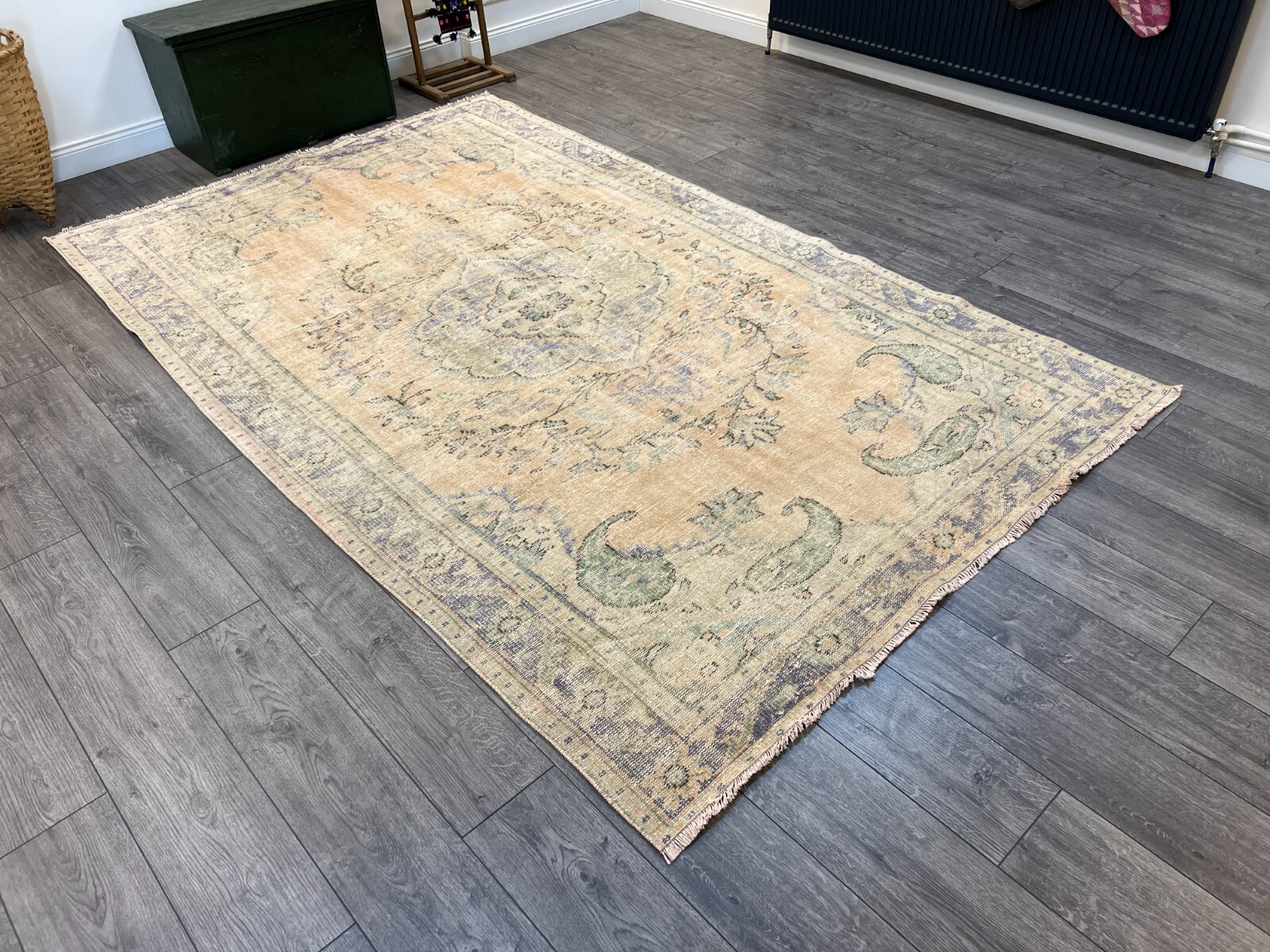 | I really love this rug! They shipped it promptly and it came in no time. It is very clean! Its in great condition exactly as seen in the pictures. It had a cleaning fragrance that aired out by draping it outside in the shade in the breeze for a bit. No grit, dust, or any other smell. Definitely ready to use with no need for repair or cleaning. The sellers are generous and easy to work with. Thank you! | susielaq (71 ) |