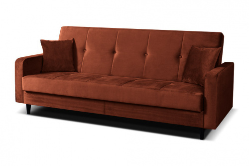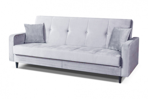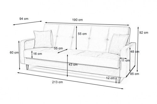 Das skandinavische Sofa Luna passt perfekt zu jedem Interieur. Das Möbelstück verfügt über eine praktische Schlaffunktion und einen Bettkasten. Das Sofa steht auf stilvollen Holzbeinen. Darüber hinaus verfügt das Möbelstück im Set über dekorative Kissen. Das Schlafsofa eignet sich auch hervorragend für das Zimmer eines jungen Erwachsenen oder für den Aufenthaltsraum, wo Sie bei Bedarf einen funktionalen und komfortablen Ruhebereich zaubern können.