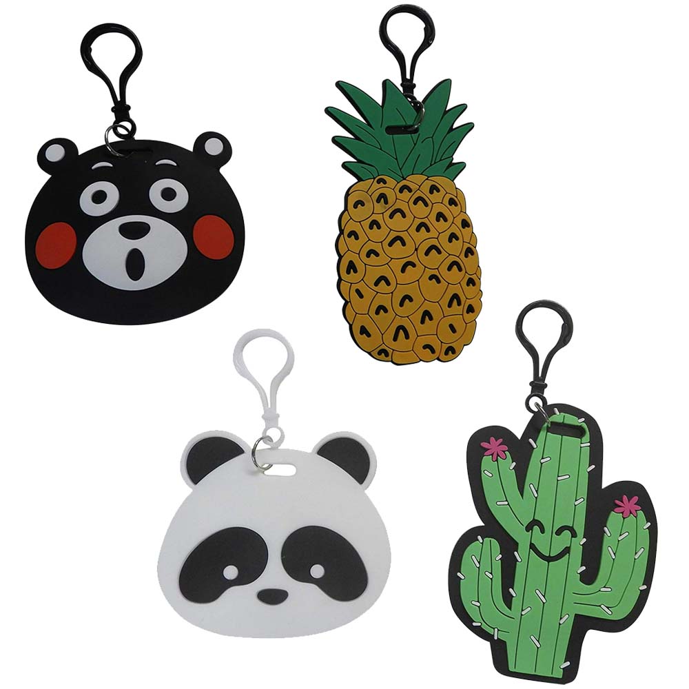 4-Pack Soft PVC Carabiner Cactus, Panda, Pineapple, Bear School Bags Luggage Tag Irresistibly Comfortable for Kids.