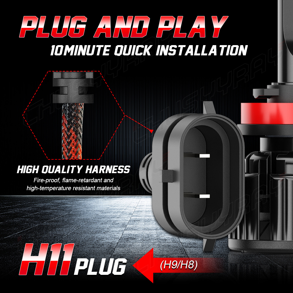 Super bright chip(USA),360 degree clear beam no blind zone Engineering beam pattern design throw light on road evenly at appropriate angle without foggy light Xenon white light reflect road paint/signs better to show clearer road situation All-in-one heat conduction+high speed mute fan system keep the light bulb in appropriate working temperature Built-in constant current CPU,instant full brightness without start-up relay