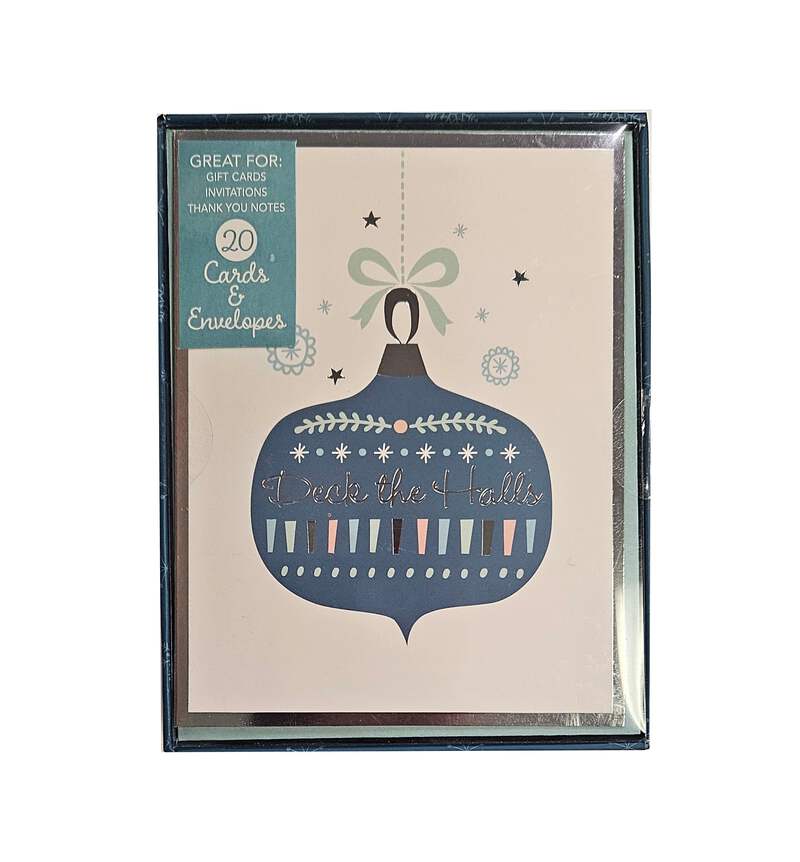 Deck The Halls Ornament - Petite Boxed Christmas Cards - Blank Inside - 20ct