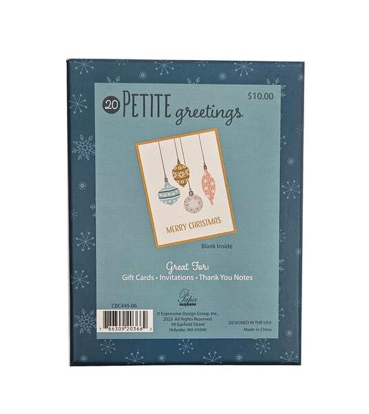 Merry Christmas Ornaments - Petite Boxed Christmas Cards - Blank Inside - 20ct