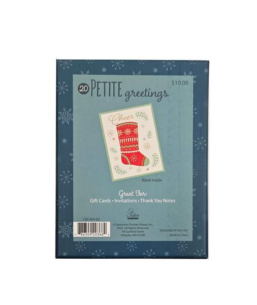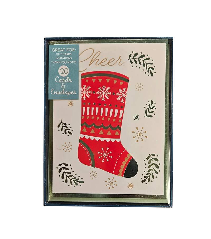 Festive Christmas Stocking - Petite Boxed Christmas Cards - Blank Inside - 20ct