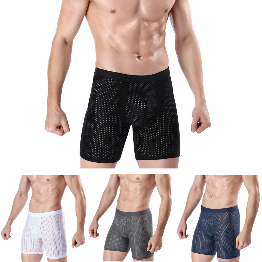 Men's Ice Mesh Underwear Long Leg Straight Leg Sports Shorts Breathable Underwea